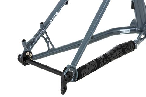 The Blue Pig frame features all the modern no-nonsense fitting standards for easy serviceability. ISCG05 tabs, 44mm headtube, internal dropper routing, threaded BB and Boost 148x12mm rear wheel fitting. Engineered from custom triple butted 4130 Chromoly Steel tubing, offering a predictable playful ride and the luxury of steel compliance and comfort.