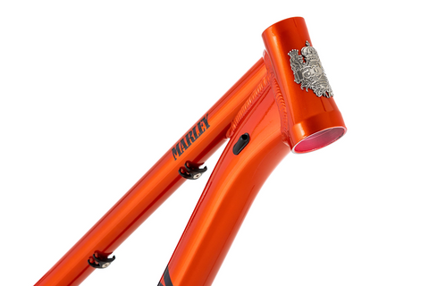 The Marley frame features all the modern no-nonsense fitting standards for easy serviceability. ISCG05 tabs, 44/56mm headtube, internal dropper routing, threaded BB and Boost 148x12mm rear wheel fitting. Engineered from custom butted 6061 Alloy tubing, offering a robust responsive frame but with balanced compliance and comfort.